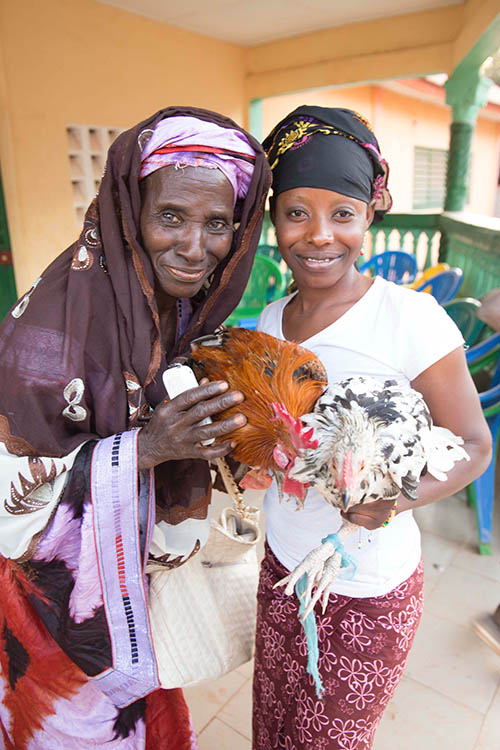 Les femmes de la coopérative offrent deux poulets à la cantine