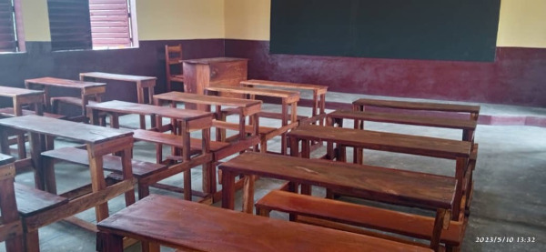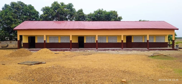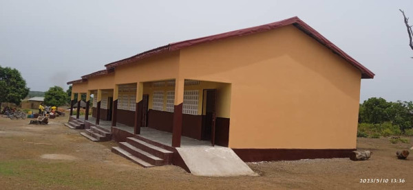 Bâtiment B de 3 salles de classe Ce projet scolaire comportant 2 bâtiments de 3 salles de classe chacun, d’un puits de forage et d’un bloc sanitaire avec 8 latrines et une fosse septique, permettra aux 387 enfants scolarisés de ce village, de poursuivre une scolarité normale du CP1 au CM2 à partir de la rentrée prochaine en septembre 2023.