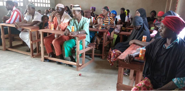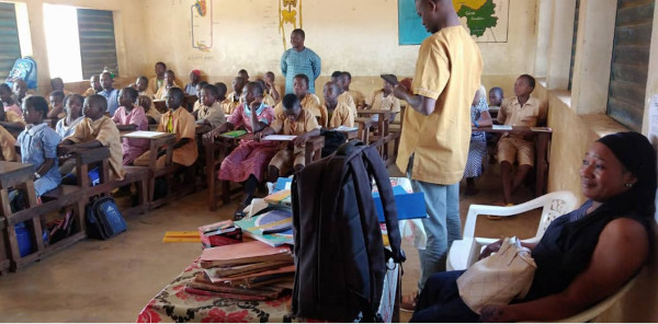 Sensibilisation des parents d’élèves sur l importance de l eau potable Dans notre projet nous avions réservé un budget pour permettre une sensibilisation autour de l importance de l eau potable pour la vie, l hygiène et la santé. Lors de la visite de la SNAPE, l’organisation responsable d assurer la qualité de l eau en Guinee, les parents ont suivis attentivement les recommandations et consignes pour connaitre les bienfaits de l eau potable sur la santé dans les nouveaux bâtiments de l´école.