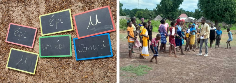 Et l´après midi, les apprentissages continuent avec des activités sportives, ou jeux ludiques pour consolider les apprentissages du matin. Une panoplie d’activités comme des courses à pied pour trouver le bon mot, des lancés de balles pour le calcul, des séances de coloriages et bien-sur des lectures de contes africain journalièrement