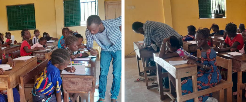 Monsieur Sékou Camara, professeur contractuel de l´état, enseigne l’informatique au collège de Fodécariah et gère le centre informatique. Avec madame Konaté, son travail de bénévolat consiste à encadrer nos 15 filles parrainées au collège. il supporte monsieur Mara dans certaines activités de l’après midi, quand il s’agit de montrer des dessins animés et de les motiver à s’exprimer.