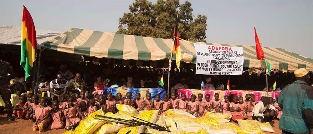 C'est avec plaisir que je vous informe du déroulement de notre parrainage de filles à Fodécariah. (République de Guinée) au cours de la dernière année scolaire. Notre association "Promotion de l'éducation en Haute Guinée e.V." y soutient depuis 8 ans les familles pauvres du village pour qu'elles puissent envoyer une fille à l'école. Aller à l'école ne va pas de soi pour les enfants en Guinée, mais encore moins pour les filles. Elles doivent aider dans les champs et les jardins, surveiller les petits frères et sœurs, etc.