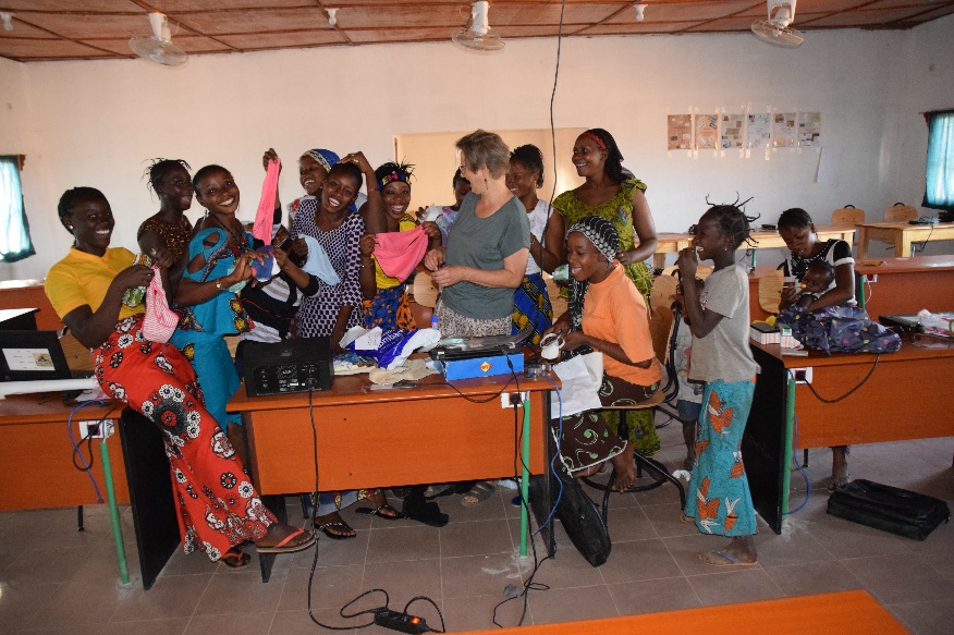 En dernier lieu, j'ai proposé un atelier éducatif pour les filles plus âgées, expliquant l'anatomie et la fonction des organes sexuels féminins par le biais d'images. Comme j'étais encore une étrangère vis de leur culture, je ne me suis pas permis d'aborder le sujet délicat de la "circoncision" pour l'instant. J'avais apporté différents matériaux pour l'hygiène menstruelle, ainsi que des serviettes hygiéniques cousues par moi-même et des schémas pour pouvoir les coudre soi-même pour celles-ci, et quelques culottes colorées. Le matériel m'a été littéralement arraché des mains. Et j'ai dû apprendre d'une infirmière que, souvent, les femmes qui viennent au centre de santé pour accoucher n'apportent pas de produits hygiéniques nécessaire avec elles et ne reçoivent rien de tel dans le centre. Il n'y a tout simplement pas de matériel...