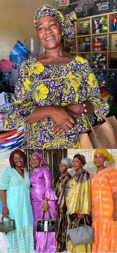 Leur tontine est constituée de 60 commerçantes, localisées à Kankan, à majorité analphabètes, mais qui ont pris leur destin en main, et ont monté chacune leur commerce, afin de faire vivre la famille et donner une meilleure éducation à leurs enfants. Sur la 2eme photo, la jeune femme à gauche en bleu, vient de terminer des études d expert comptable et s’engage à aider à encadrer et professionnaliser toutes les commerçantes grâce à son expertise.