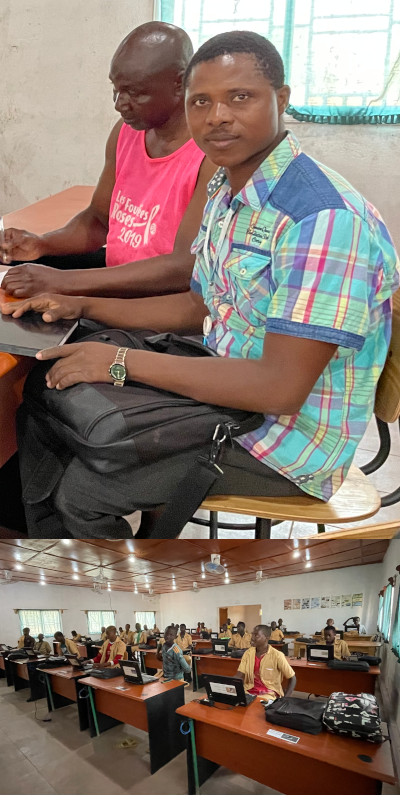 C´est avec passion et minutie qu’il gère ce centre et assure 2 heures de cours d’introduction à l´informatique à tous les élèves du collège et lycée de Fodecariah depuis 2018. L´informatique n´est pas au programme scolaire guinéen, donc l´enseignement se passe sans contrôles ni notations, c. a d. juste par le volontariat et le plaisir de l´apprentissage!